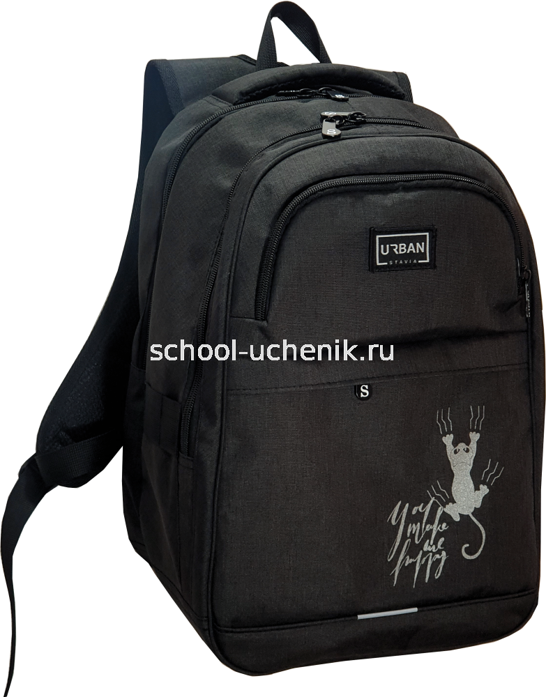 Рюкзак из нейлона плотностью 600Д с водоотталкивающей ПВХ-пропиткой. Два вместительных отделения, два удобных кармана на передней стенке, один боковой карман, два внутренних кармана.. Спинка и лямки мягкие, с анатомическими вставками. На лямках и передней стенке рюкзака есть светоотражающие элементы.