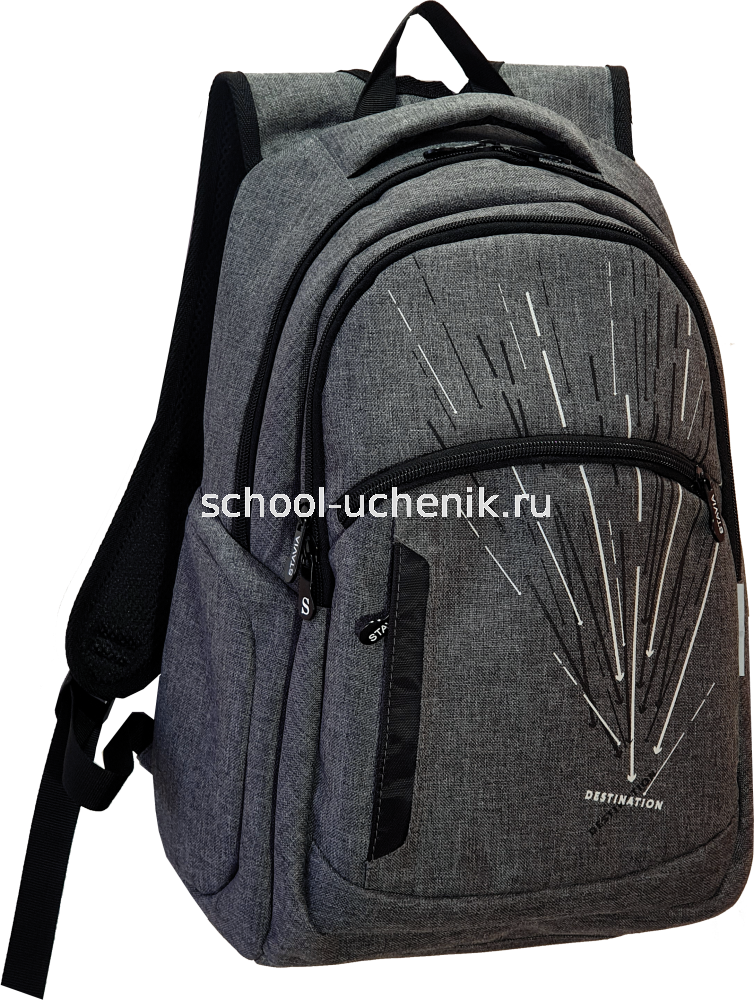 Рюкзак городского типа выполнен из нейлона плотностью 600Д. Вес рюкзаки 745 г, размер 32 х 44 х 16 см. Два отделения, два передних кармана, два боковых кармана. Плотная спинка с анатомическими вставками, регулируемые по длине плотные лямки-маечка. Рюкзак оснащен светоотражающими вставками.