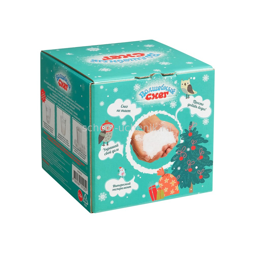 Создайте зимнюю атмосферу в любое время года! Сделать это вам поможет сувенирный набор Волшебный снег. Внутри красочной коробки вы найдете безопасный полимерный материал, которого хватит для приготовления целого литра снега. Нужно просто добавить в него воды! Готовый снег очень похож на настоящий: такой же пушистый, рассыпчатый и искрящийся. Он даже холодит на ощупь!