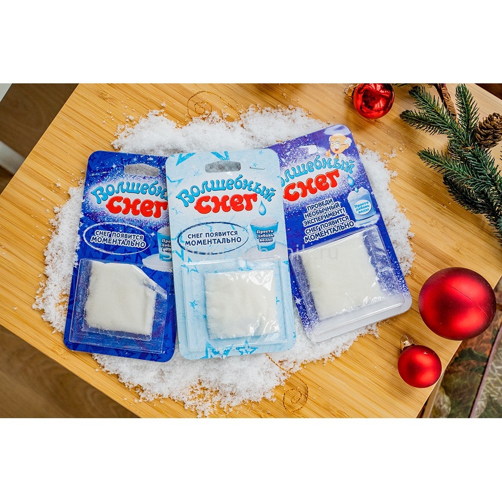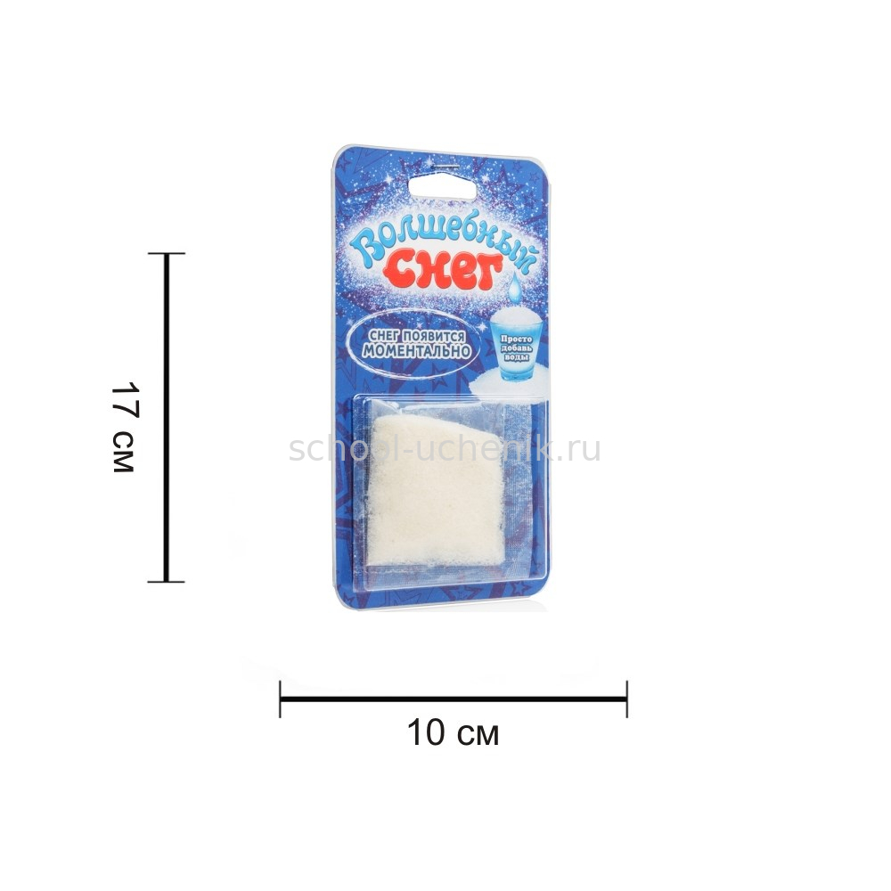 Волшебный снег – это необычный эксперимент: добавьте воды, и вы увидите, как снег увеличится в объеме в 10 раз буквально за секунды! У вас получится искусственный снег, он очень похож на настоящий – такой же прохладный, влажный и приятный на ощупь. Используйте Волшебный снег для декора и любых творческих задумок.